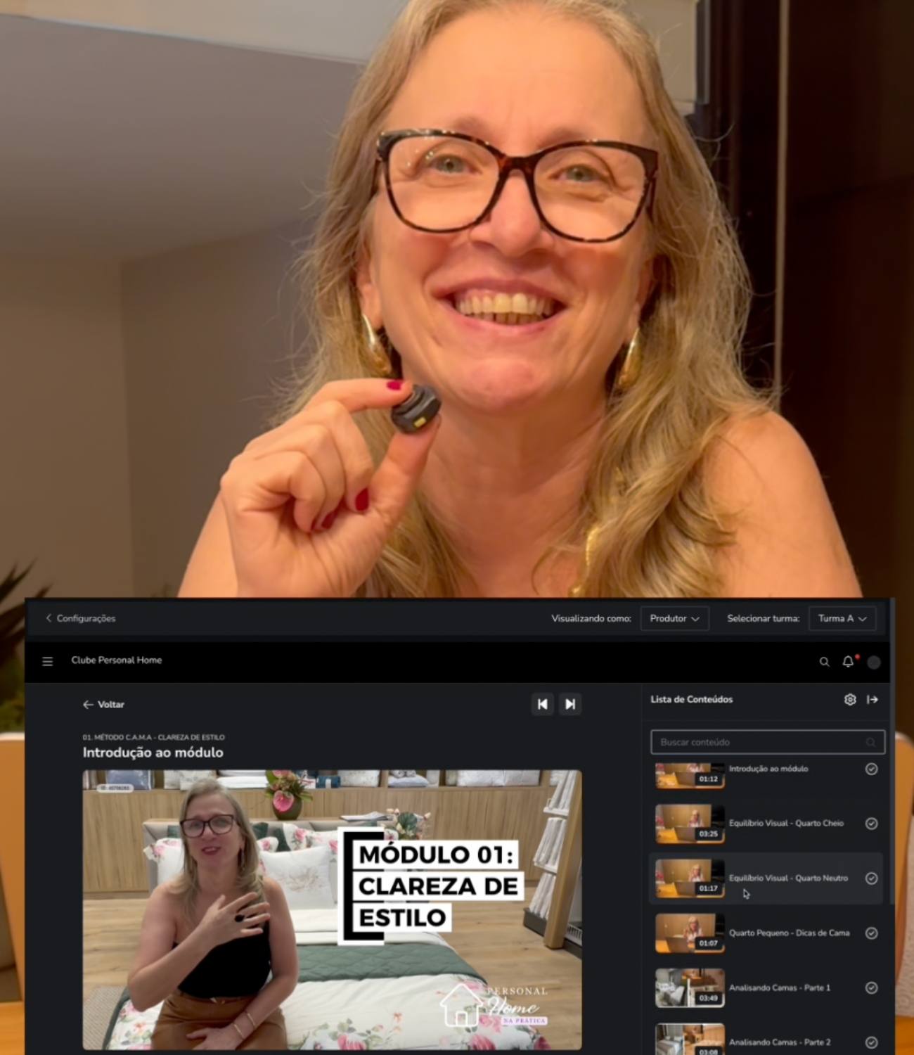 Um curso online, com aulas gravadas, lives mensais e acesso a uma comunidade exclusiva de mulheres que resolveram transformar seu lar. Você aprende no seu tempo, de onde estiver, e pode tirar dúvidas diretamente com a criadora do método.